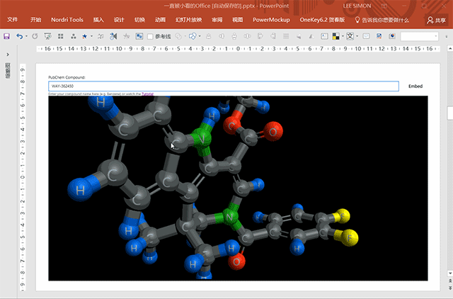 比如我输入水:Water,马上就弹出相应的分子式。你还可以对画面进行旋转,缩放,调整体位等等等等……看: