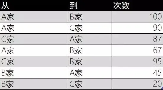 举个例子,有A,B,C三个人经常互相约*,那如何把这段复杂的关系表达清楚呢?借助这个插件,就很简单了。首先简单统计一下次数,如图: