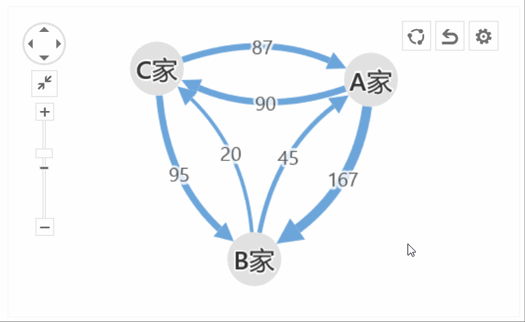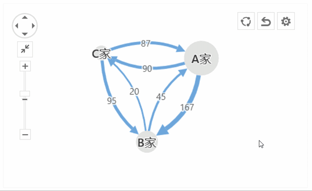 设计好后的路径关系图,可以进行随意缩放,拉动,选中……等等交互操作: