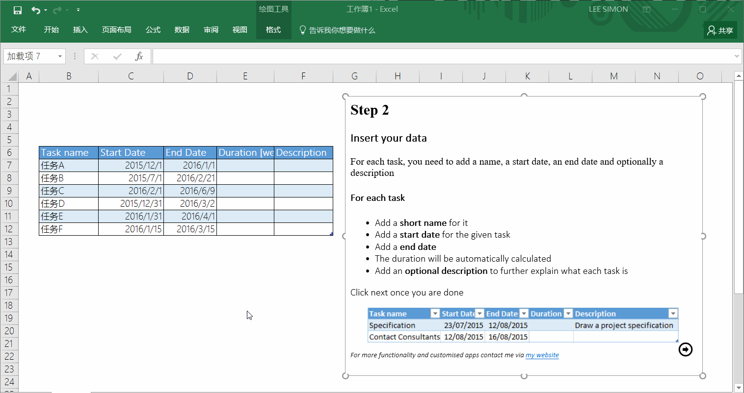 打开插件后,它会让你填一个表格,把任务名称和起止日期填上就行,其余的选填。