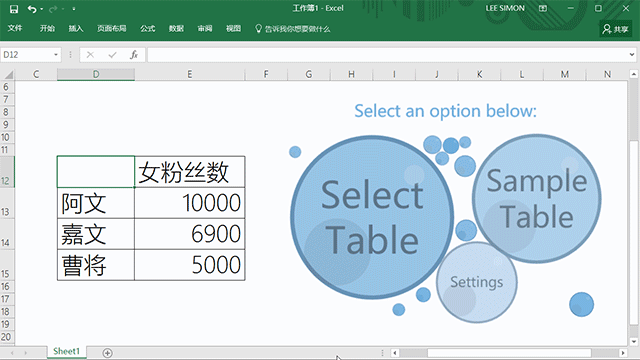 这是一款简约便捷的气泡图插件。打开应用,选中数据,可以秒变气泡图: