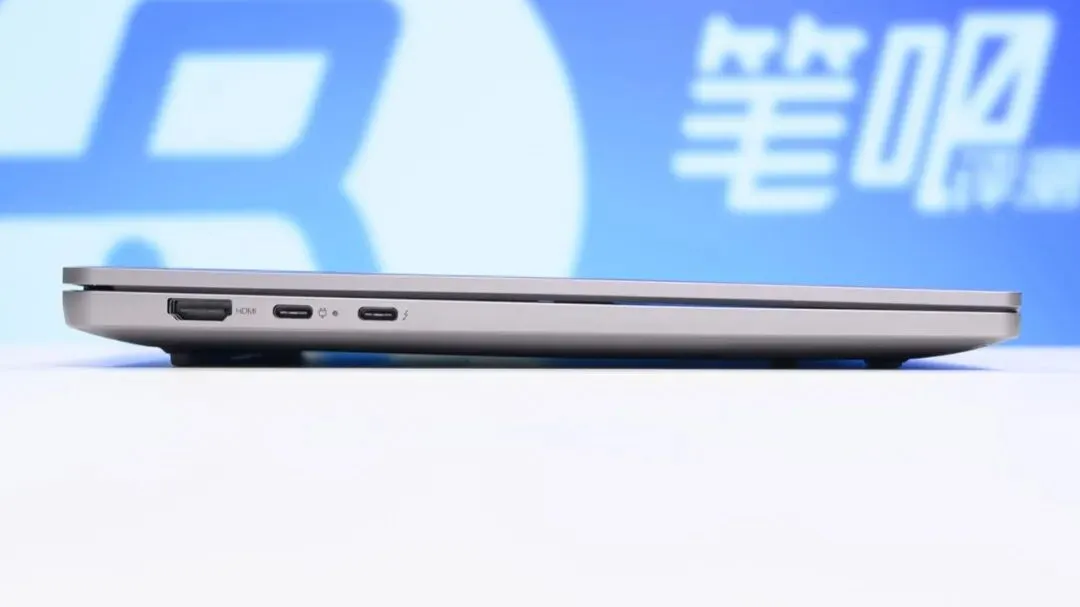 接口方面,这台电脑左侧有一个USB-C 10Gbps、雷电四接口(均支持DP1.4输出以及PD 140W充电)和一个HDMI2.0接口;