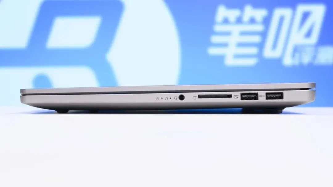 右侧有两个USB-A 5Gbps接口、一个SD读卡器(UHS-I)以及3.5mm音频接口。