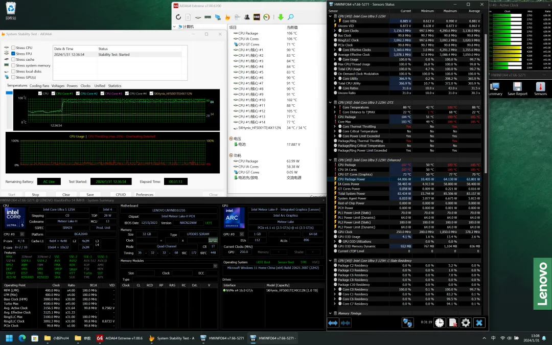 针对酷睿Ultra处理器,我们使用Stress