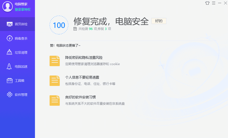 总的来说,拉梨觉得纯净版的腾讯电脑管家对于大众来说还是很有必要的,毕竟现在配置好一点的电脑就要小一万呢,还是要好好呵护一下~