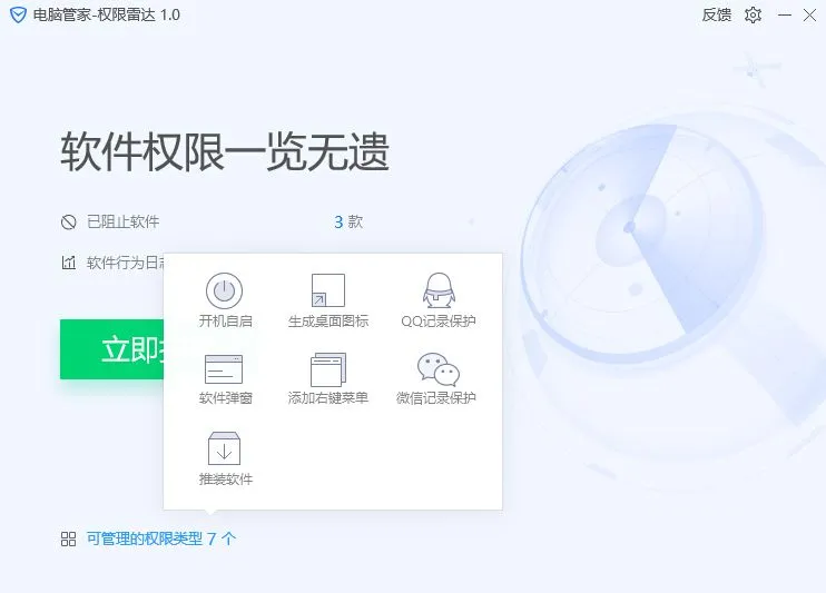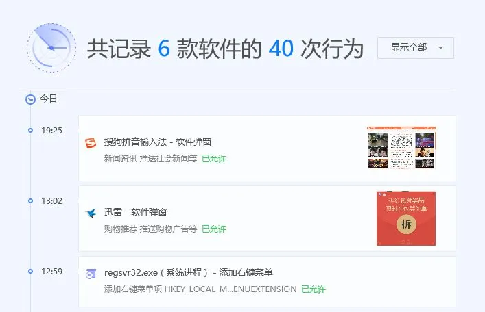 不过有了权限雷达,通过软件行为日志就能快速找出是哪些软件背着你推送广告~