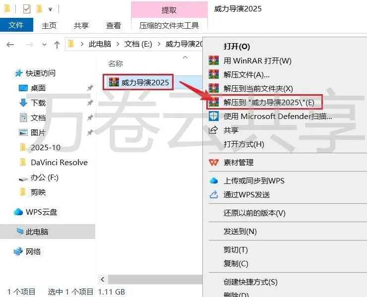 1.鼠标右击→压缩包,选择→解压到EDIUS 9.55