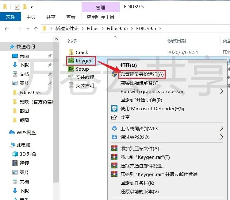 7.鼠标右击→解压出来的Keygen,选择→以管理员身份运行