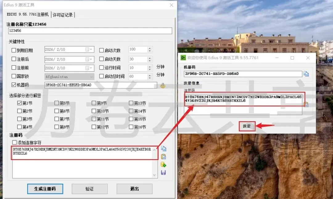 9.将生成的注册码复制到第五步的注册页面中,点击→注册