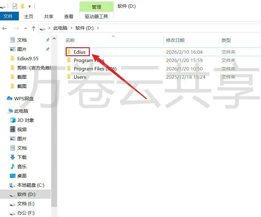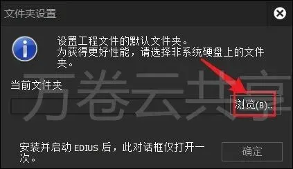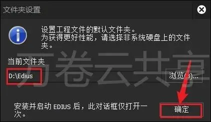 11.选择需要将文件存放的磁盘(如:D盘)新建一个edius并选中,点击→选择文件夹