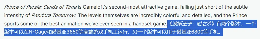 如果说如今各大手机厂商会在发布会上把《原神》当作跑分软件,以展示自家手机性能的话,那么《波斯王子:时之砂》可以说是JAVA手机游戏时代的《原神》。