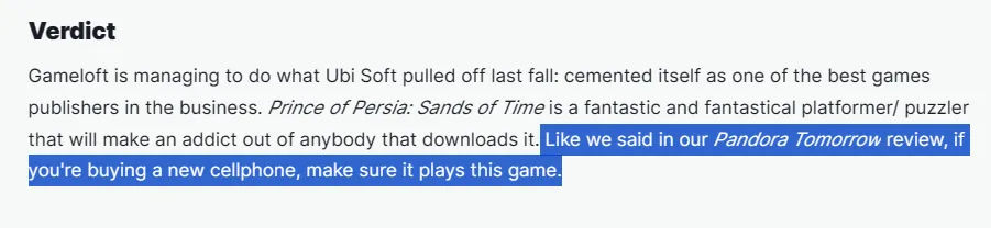 连IGN当年都如此评价这款游戏:如果你正要买新手机,请确保它能运行《时之砂》。