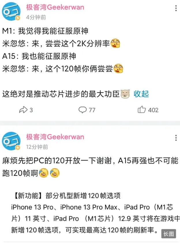 同时游玩《原神》手机端和PC端/PS端的玩家应该知道,手机端的最高画质与PC/PS端的最高画质差别十分明显,受制于性能,手机端远景人物建模材质均不是完全体。目前搭载8gen3处理的手机可以实现2k60帧游玩原神,但是代价就是手机发热严重。