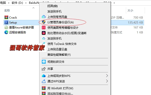 2.打开安装包,选中setup.exe鼠标右键选择【以管理员身份运行】