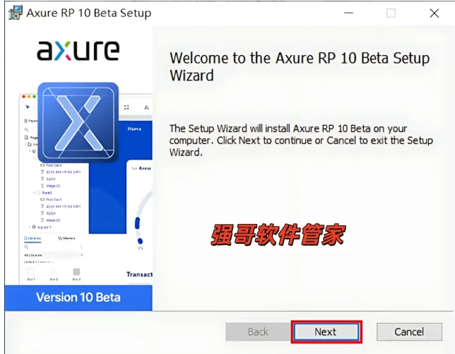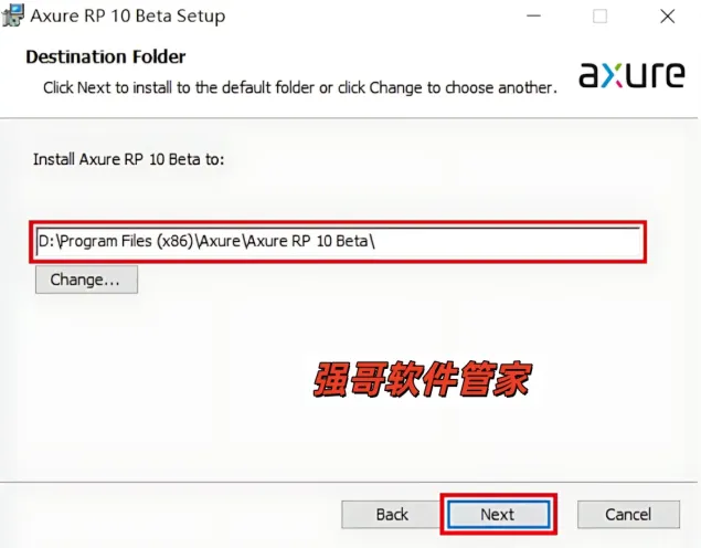 5.点击【Browse】可更改安装位置(建议不要安装在C盘,可以在D盘或其它磁盘下新建一个“Axure RP10”文件夹。注:安装路径中不能有中文),我这里是直接把“C”改成了“D”。然后点击【Next】