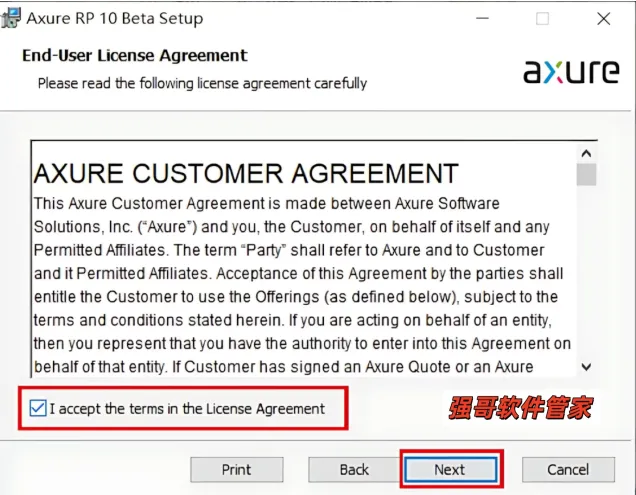 4. 勾选【I accept the terms...】,点击【Next】