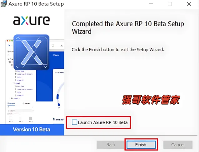 8.取消勾选【Launch Axure RP 10 Beat】,点击【Finish】