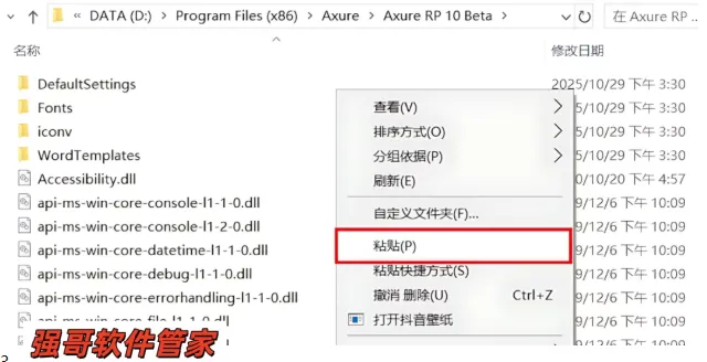 11.打开软件安装路径:【D:\Program Files (x86)\Axure\Axure RP 10 Beta】,鼠标右击空白处选择【粘贴】