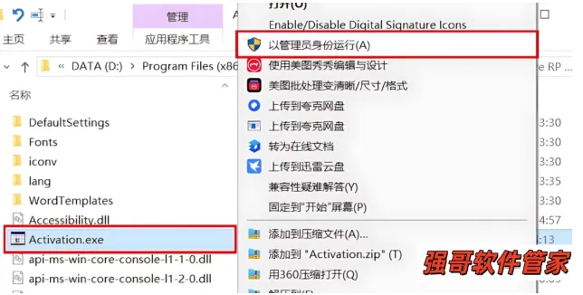22.打开软件安装路径:【D:\Program Files (x86)\Axure\Axure RP 10 Beta】,鼠标右击【Activation】选择【以管理员身份运行】