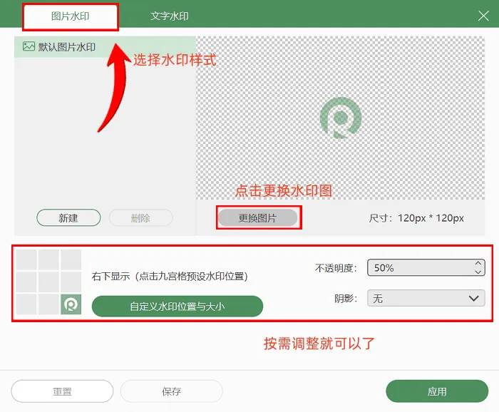 2. 选择好录制模式,软件会自动转到准备设置页面,在这个页面,用户能按照自己的需要调整录制区域和音量设置。而且,如果你要设置录制水印,能点击下方的【图片水印】选项来设置,全部设置好之后,就可以点击【开始录制】;