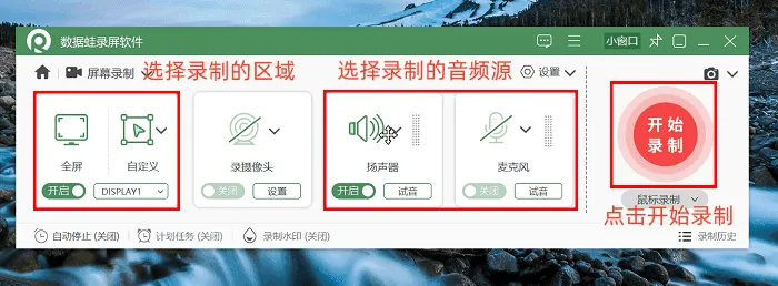 接下来要为大家介绍的是数据蛙录屏软件,可以说是录屏软件电脑版的优质选择,也是本次电脑录屏软件推荐中的亮点!无论你需要录制高清的教学内容,还是保存会议关键信息,或是留下直播中的精彩瞬间,它都能轻松应对。