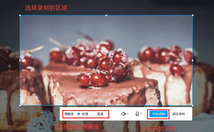 2. 录制前完成各项参数配置,涵盖视频格式、清晰度等级、帧率设置,同时可自行选择是否录制声音(麦克风/电脑系统音),并决定是否开启摄像头。