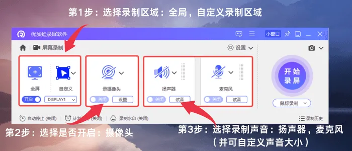 电脑录屏软件三:启动优加蛙录屏软件