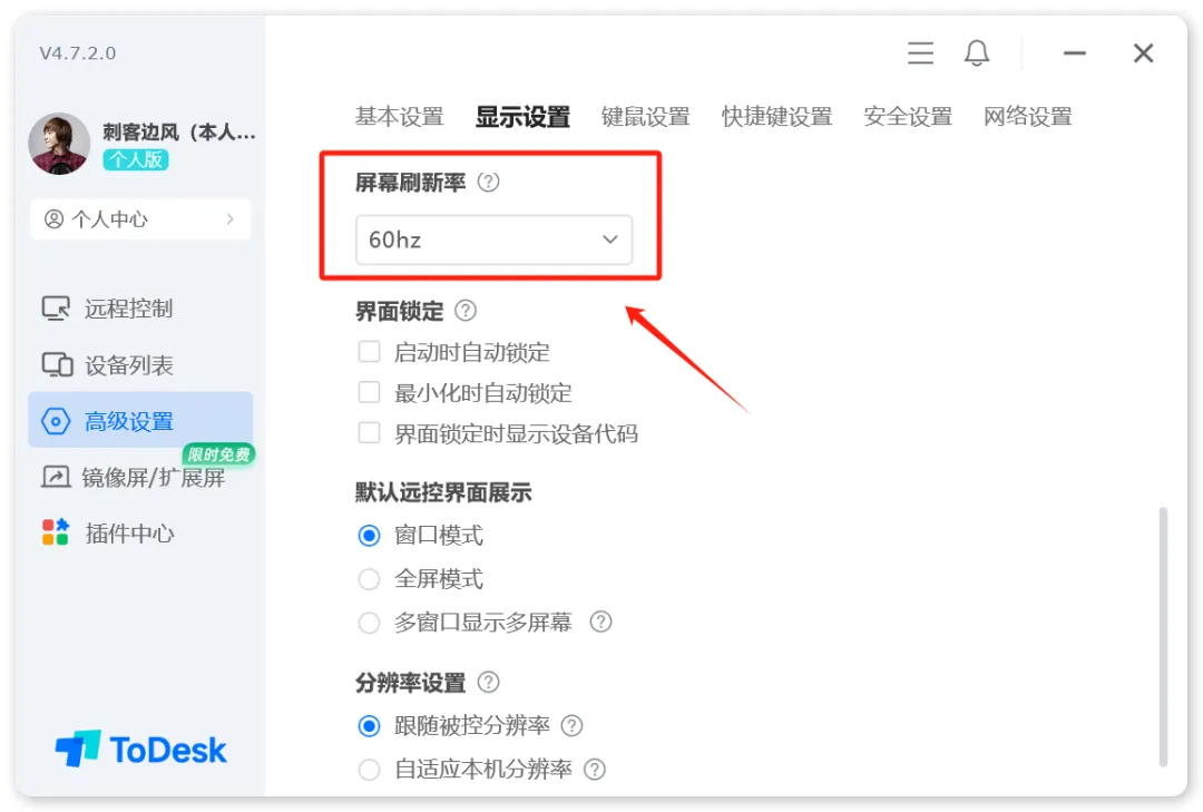 这里面比较重要的是,显示设置里,记得将帧数勾选为60: