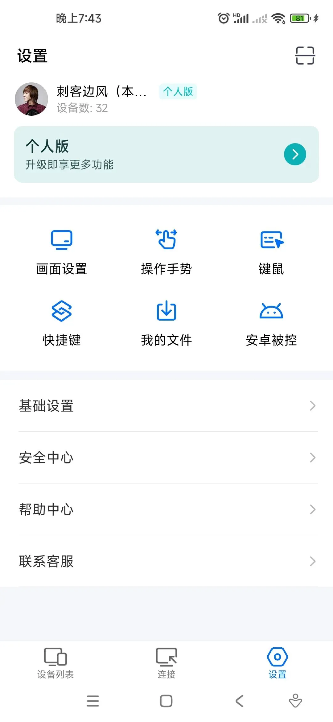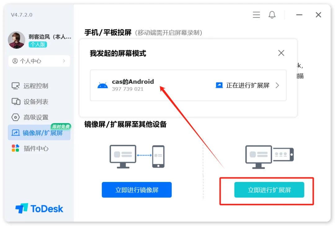 我们先在电脑上安装客户端,然后会自动生成设备代码,左侧也是提供了各项功能,包了远程控制、镜像屏、扩展屏等等。