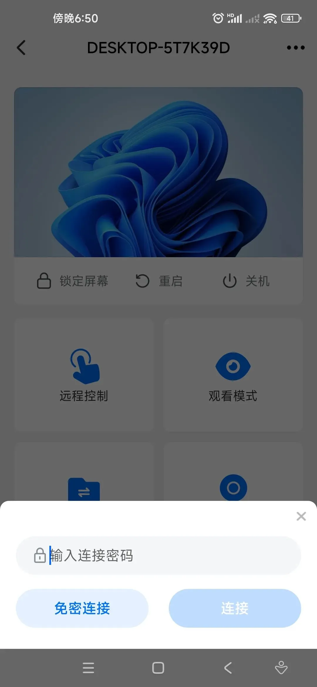我们点击远程控制,然后输入电脑上的连接密码: