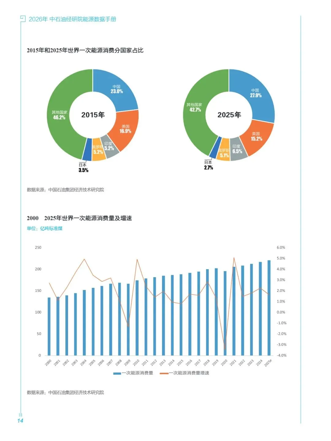 同时,手册收录国际原油、天然气、液化天然气价格走势,以及世界主要碳市场价格、全球顶尖石油公司综合排名等核心信息,通过清晰的图表与数据表格呈现趋势性与结构性特征,直观反映全球能源格局演变与中国能源发展态势。