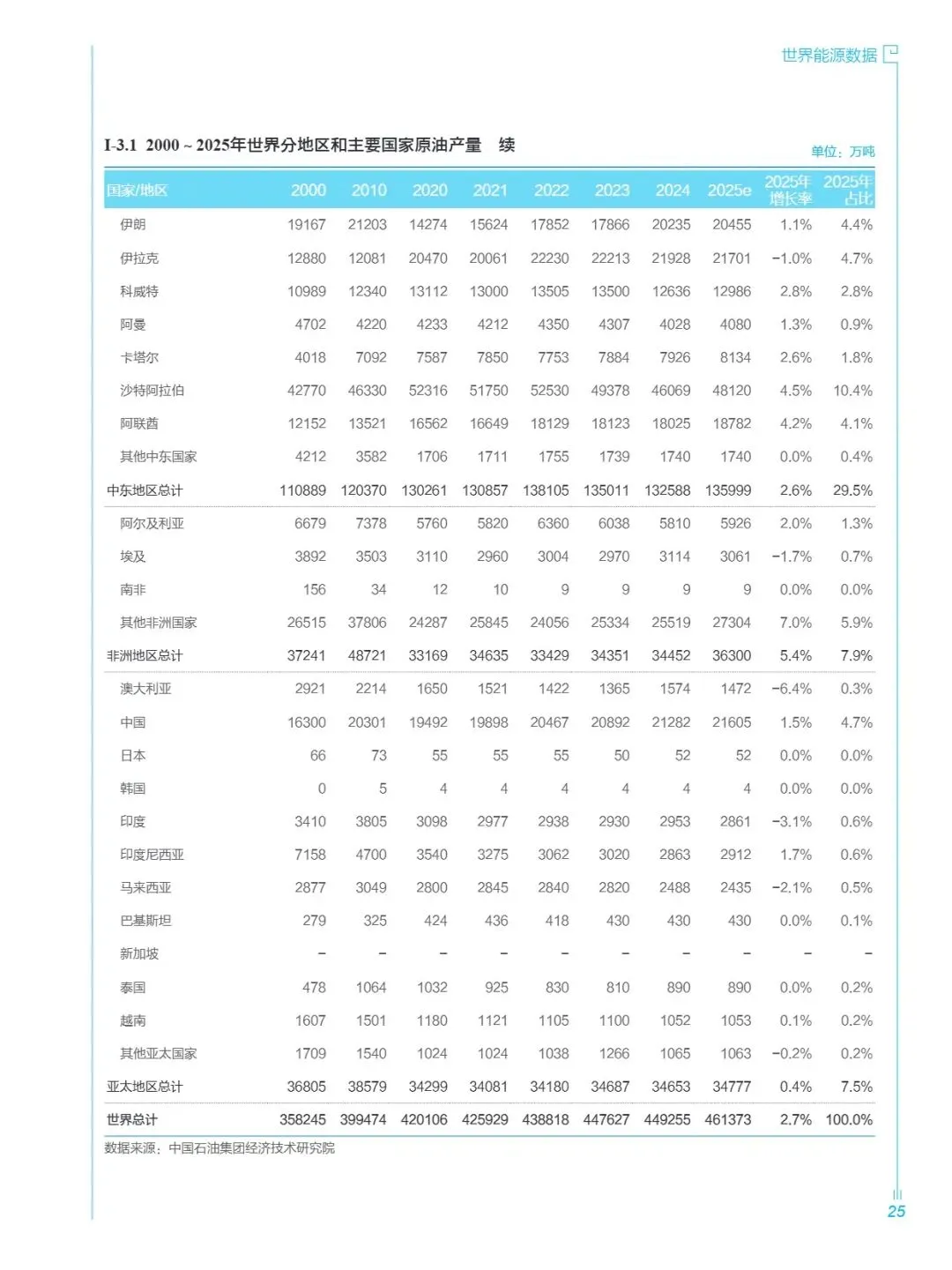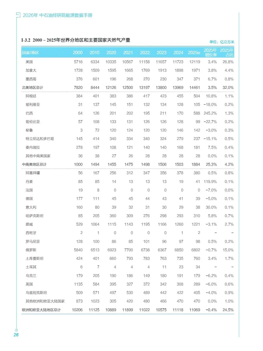 核心数据覆盖全球主要国家及地区,细分北美、中南美、欧洲和欧亚大陆、中东、非洲、亚太六大区域,重点突出中国油气领域详细数据,包括能源消费结构、产储量、发电量、加工能力、进出口贸易等关键指标;