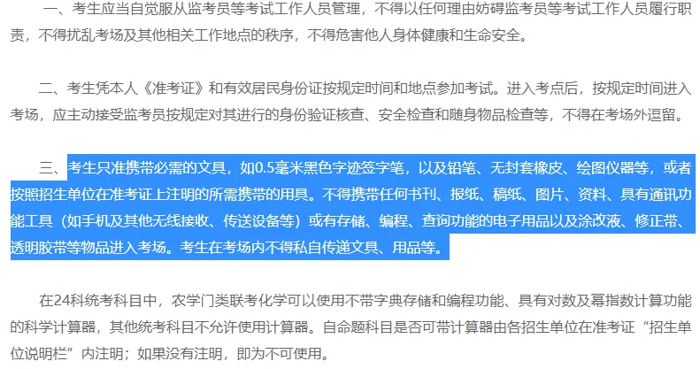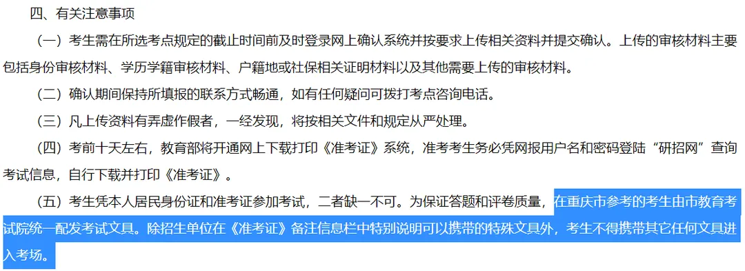 A:建议重新下载PDF文件阅读器查看。可下载系统页面提供免费下载的PDF文件阅读器Foxit Reader或到其它合法网站自行下载PDF阅读器。此外,建议下载时勿使用下载工具,可选择“另存为”的方式下载。A:准考证下载期间,下载次数没有限制,下载后请妥善保管。A:准考证上一般会显示考试时间和考试地点,考场和座位号信息由报考点根据实际情况,确定是否在准考证上体现。如准考证上没有考场和座位号信息,您可咨询报考点如何获取对应信息。根据自己所选报考点的要求,准考证上面也会有说明考点统一提供文具或是需要考生自备文具。湖南省2023研考规定,在湖南省参加初试的考生使用考点统一配备的工具作答(除计算器、绘图工具等特殊用品),考试期间如携带和使用规定以外的自带作答工具,将按照考试违规处理。重庆2023研考要求,在重庆市参加考试的由考试院统一配发文具,除招生单位在准考证备注信息栏中特别说明可以携带的特殊文具外,考生不得携带其他任何文具进入考场。江苏省2022研考考场规则:考生只准携带必需的文具,如0.5毫米黑色字迹签字笔,以及铅笔、无封套橡皮、绘图仪器等,或者按照招生单位在准考证上注明的所需携带的用具。一般情况下,标准考场都会统一配备挂钟,考生不得携带任何计时类工具进入考场。电子手表肯定是不能带进去的,如果是机械手表,可以在进场前问监考老师能不能带。大家在考前一天去看考场时,看看自己的座位是不是靠后,如果看不清前面挂钟的话,可以准备眼镜。实在看不清可以举手问监考老师。除手机以外,违禁物品还包括手表、书包、手包、涂改液、修正带,书本及学习资料等。进入考场前作好考试相关准备,提前上卫生间,进入考场后原则上不得再出考场。如果确实有特殊情况有出考场需要,需征得监考老师同意,并由工作人员陪同。返回考场时需要再次核验身份、安全检查和随时物品检查等。