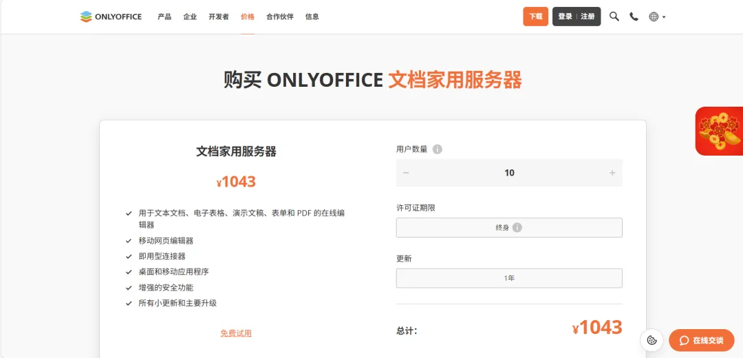网络研讨会直播结束后开奖,抽取 3 名幸运用户,直接送出 ONLYOFFICE 文档家用服务器。
