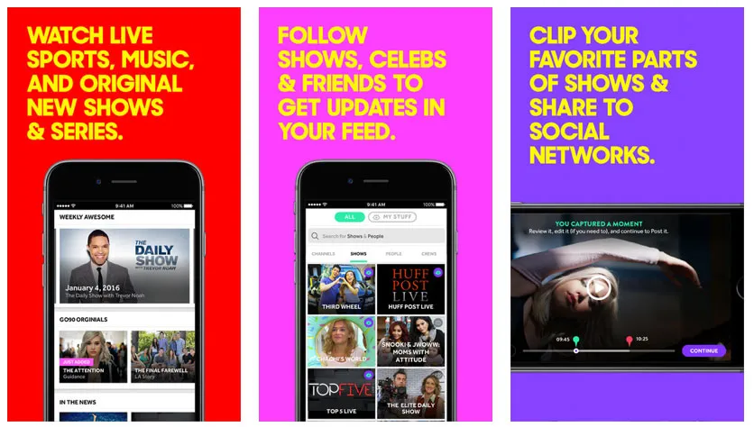 2015年,美国通讯巨头Verizon推出了名为Go90的平台,与Quibi的定位颇为相似:面向年轻用户,同样提供各类新闻节目、真人秀、体育节目,接入了各大电视台的剧集,还允许用户将内容剪辑成短视频分享上网。