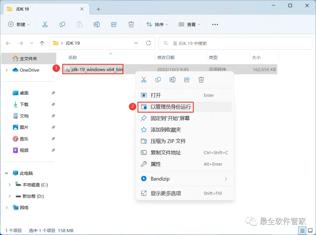 3、找到【jdk-19-x64】应用程序,右键选择【以管理员身份运行】它
