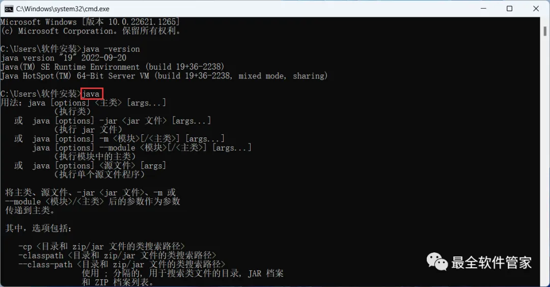 10、输入:java,,按下键盘上的【Enter】回车键,得到下列反馈