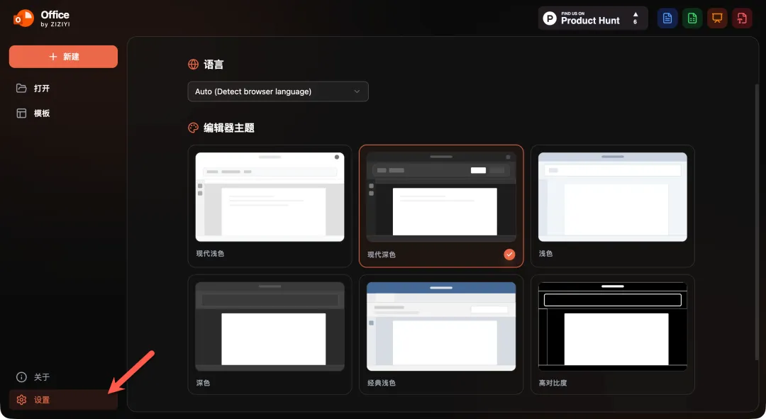 TIP:左下角设置,可以切换页面语言和主题