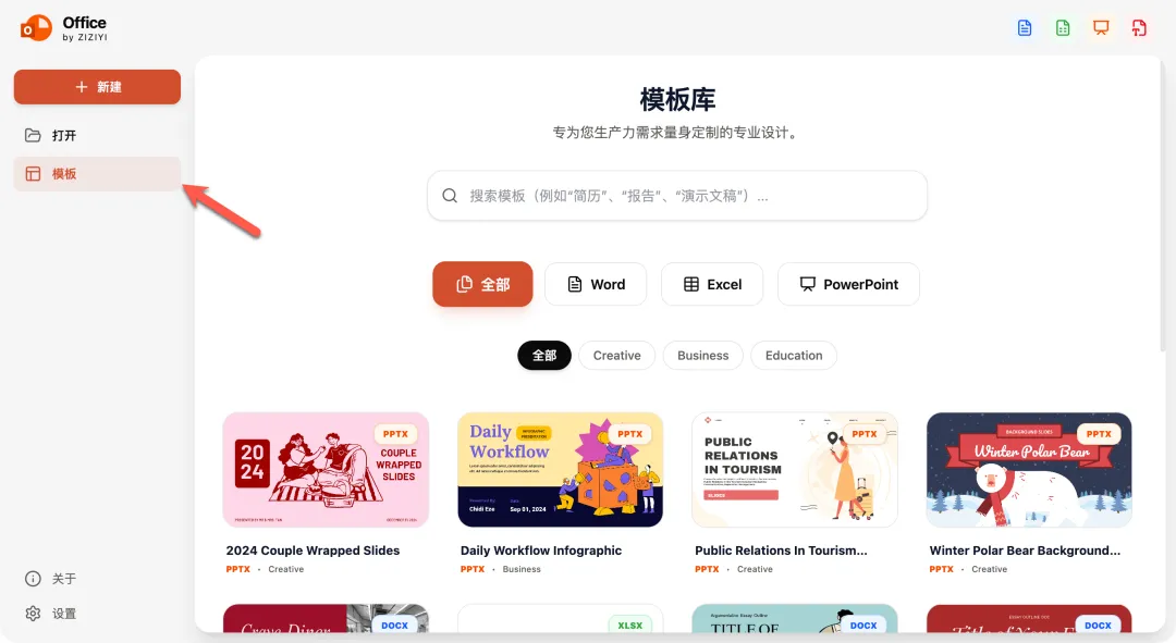 除了打开本地文档,也能在线新建空白文档