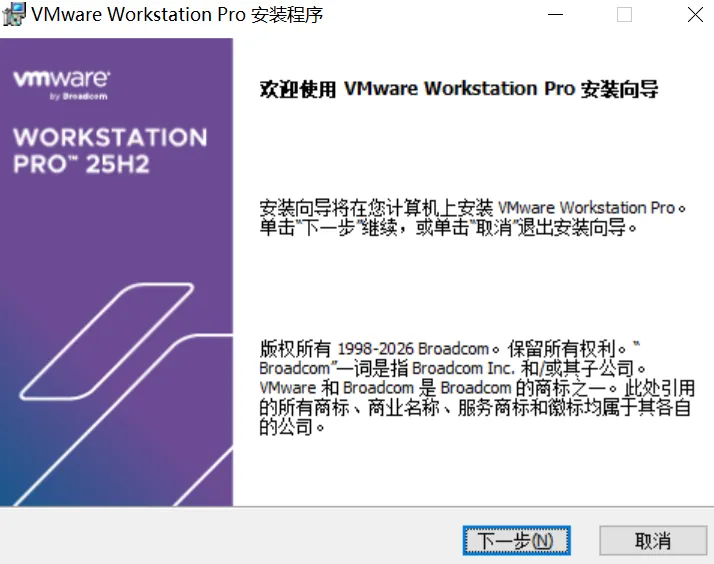 VMwareWorkstation v25H2u1中文精简版.exe一路“下一步”