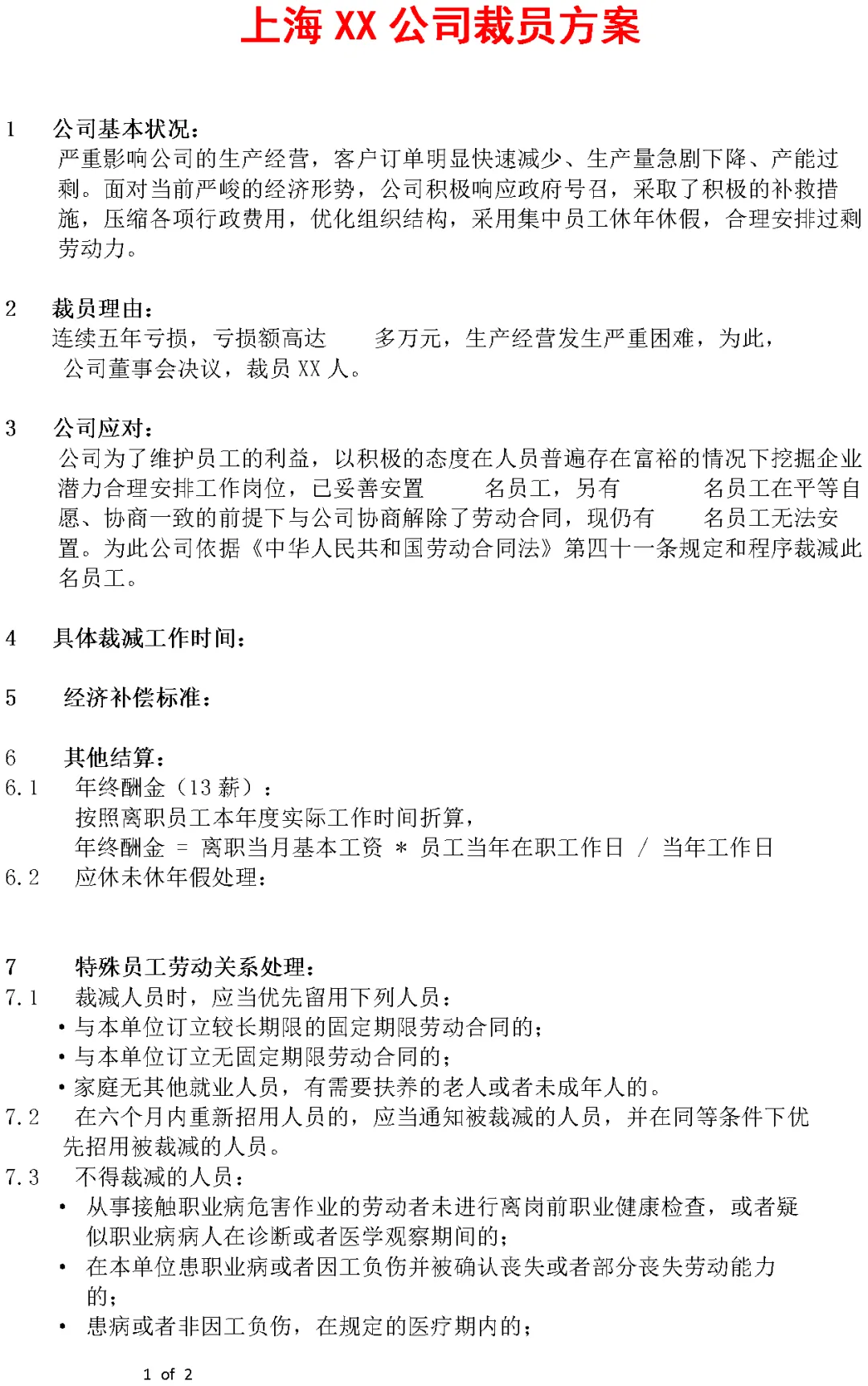 本资料为《上海某公司裁员方案(Word模板)》,欢迎加入会员领取!