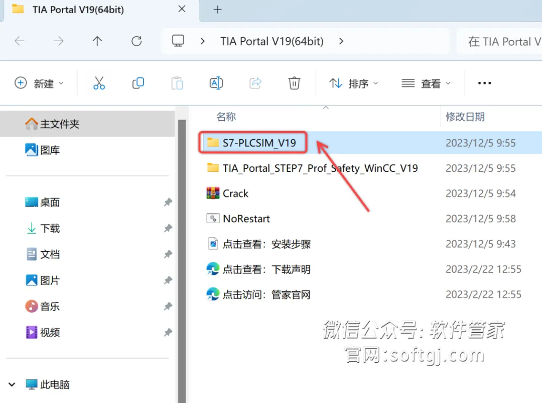 19.回到解压后的【TIA portal V19 (64bit)】文件夹,双击打开【S7-PLCSIM_V19】文件夹。
