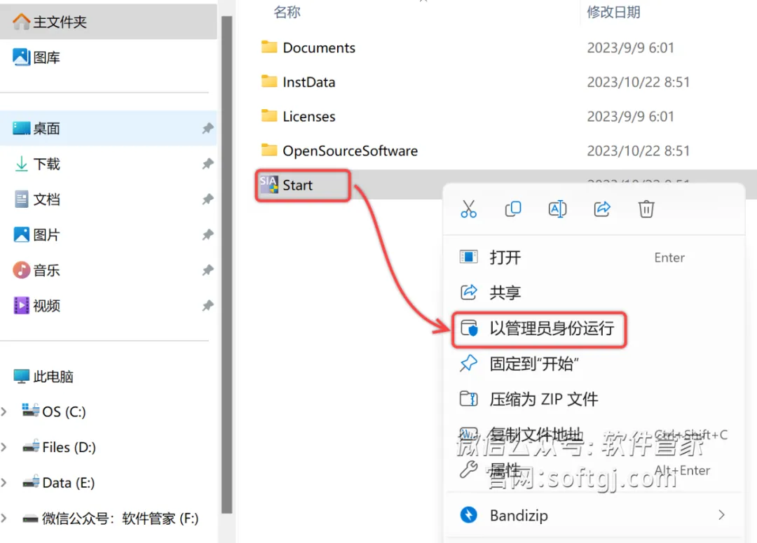 5.鼠标右击【Start】选择【以管理员身份运行】。