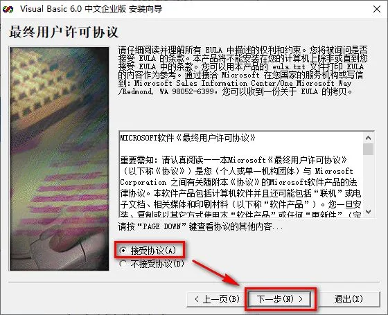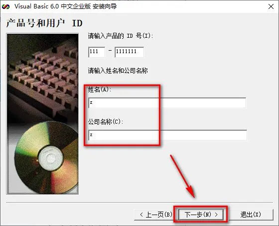 2.双击打开【visual basic 6.0】文件夹 ![]() 3.双击运行SETUP ![]() 4.点击“下一步” ![]() 5.选择接受协议,点击“下一步” ![]() 6.姓名与公司名称随便输入,点击“下一步”