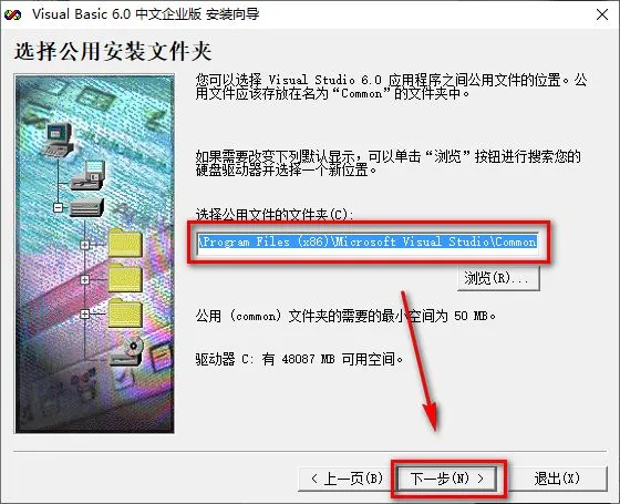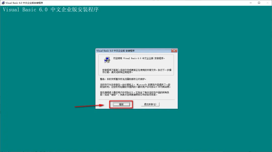 7.选择安装Visual Basic 6.0中文企业版,点击“下一步” ![]() 8.选择软件安装路径,点击“下一步” ![]() 9.点击“继续” ![]() 10.点击“确定” ![]() 11.点击“确定” ![]() 12.选择典型安装,选择软件安装路径