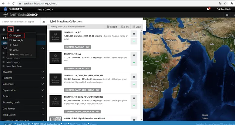 1.打开网址http://search.earthdata.nasa.gov/,得到下面的界面。(注意需要登陆才能下载)
