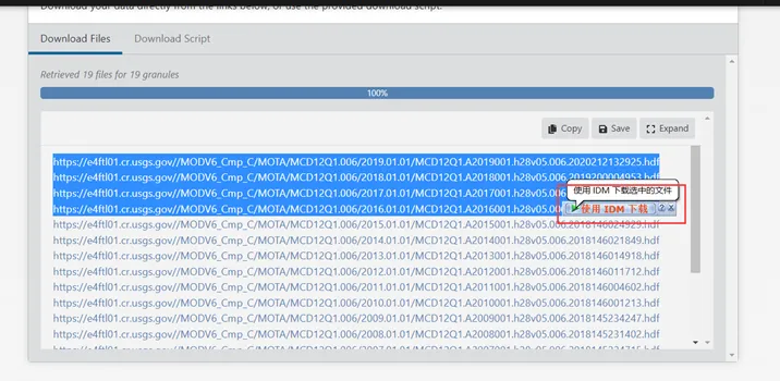 11.以前四个数据为例,选中前四个数据,界面上会自动弹出使用IDM下载