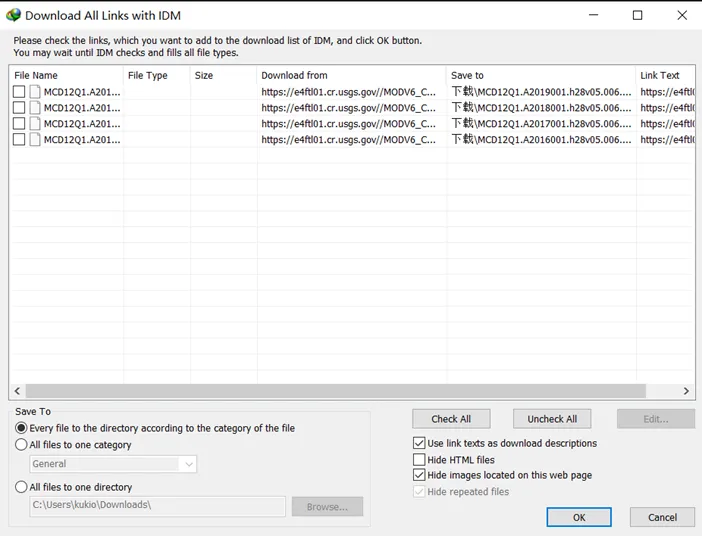 12.右击选中的区域,选择IDM—使用IDM下载选定链接,弹出下面的界面