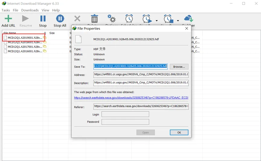 注意:用户名和密码指的是NASA官网所输入的用户名和密码