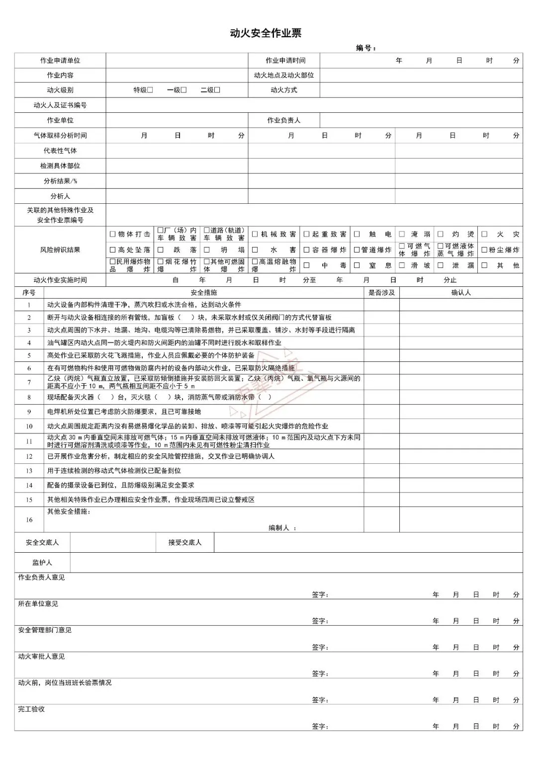 动火安全作业票下载可直接使用